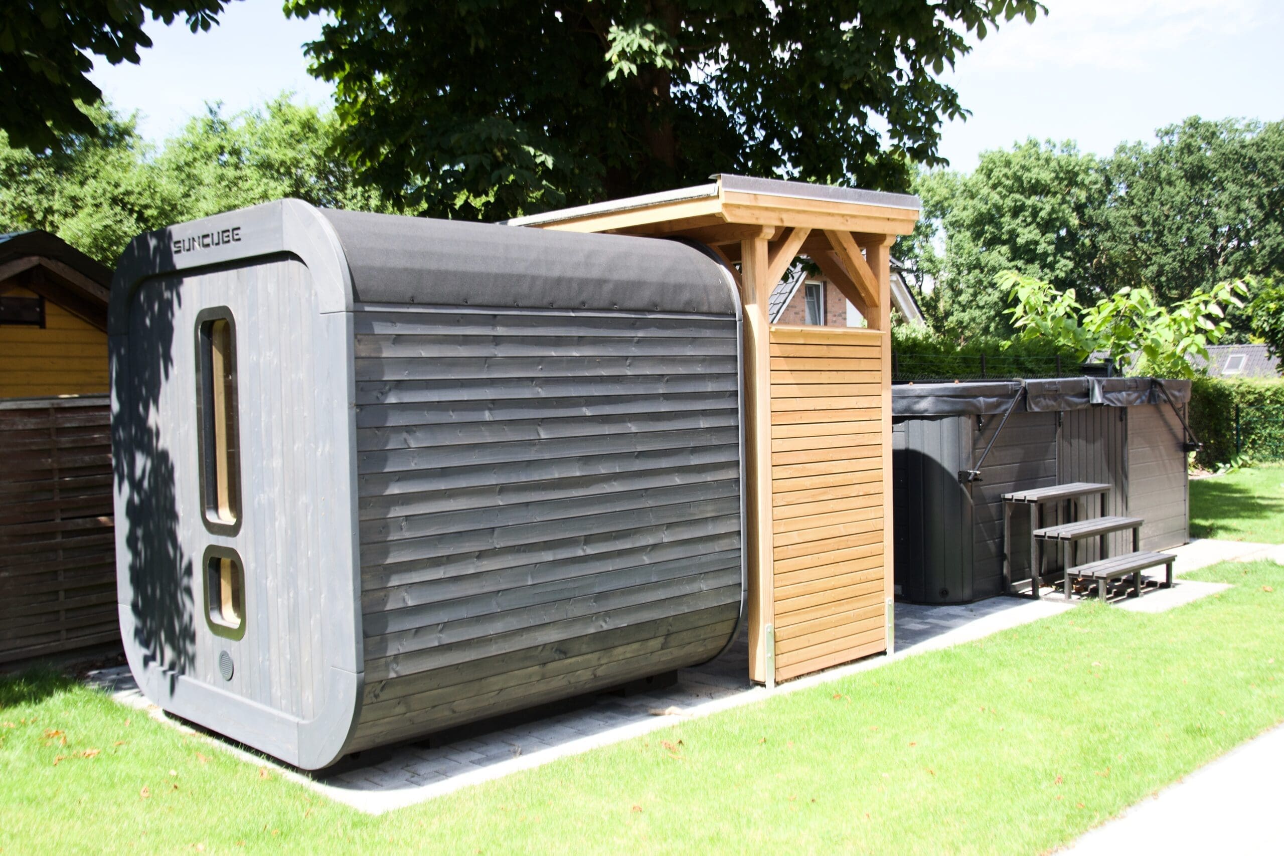Die Sauna im Garten erreichen Sie über den kurzen Weg von Ihrer Ferienwohnung FleesenSeetreppe Links zum Umkleidebereich. Ihre Sauna ist eine Gartensauna der polnischen Firma “Suncube” und bietet bis zu vier Personen Platz.